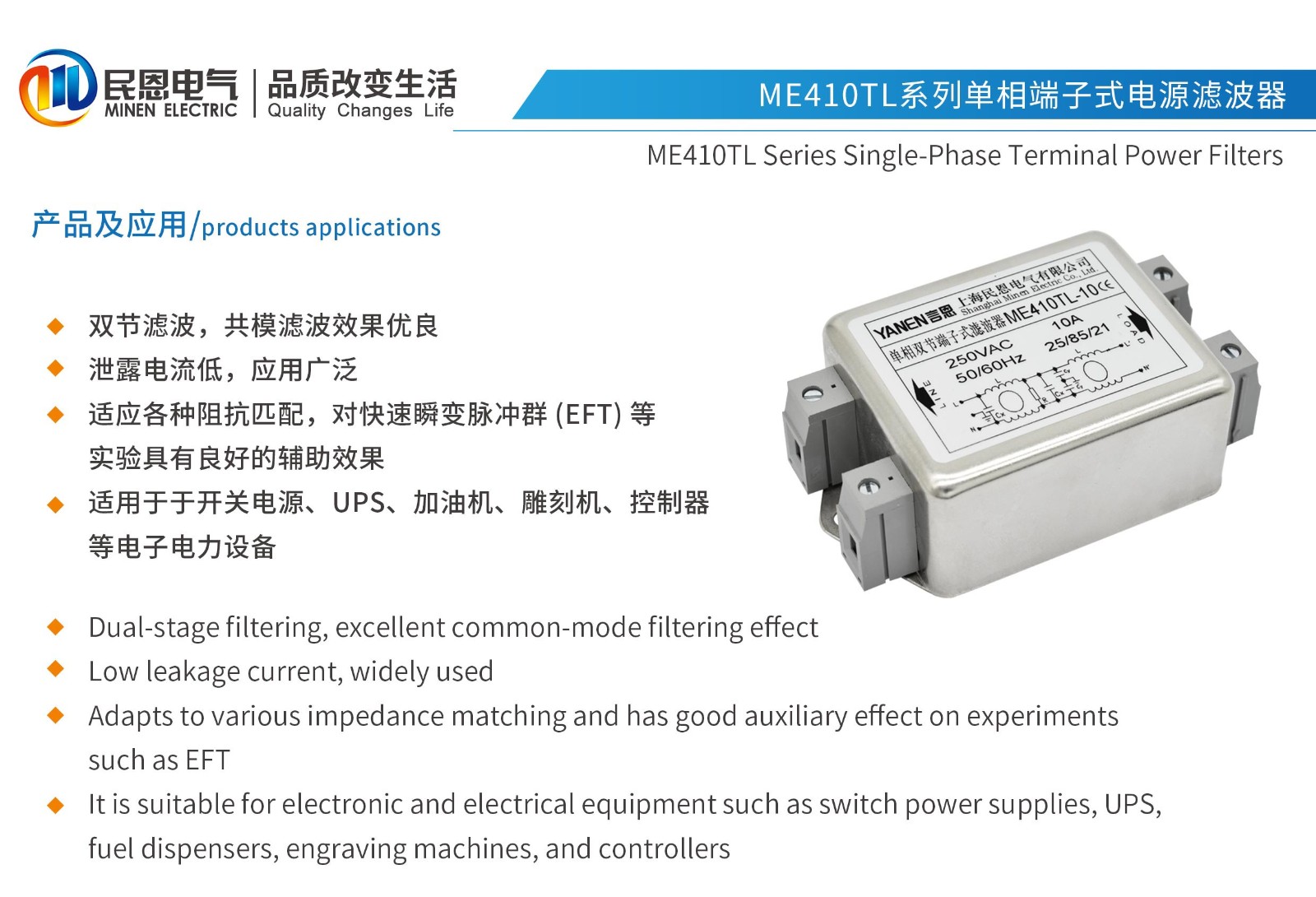 雙節濾波,共模濾波效果優良,泄露電流低,應用廣泛,適應各種阻抗匹配,對快速瞬變脈沖群 (EFT) 等實 驗具有良好的輔助效果。