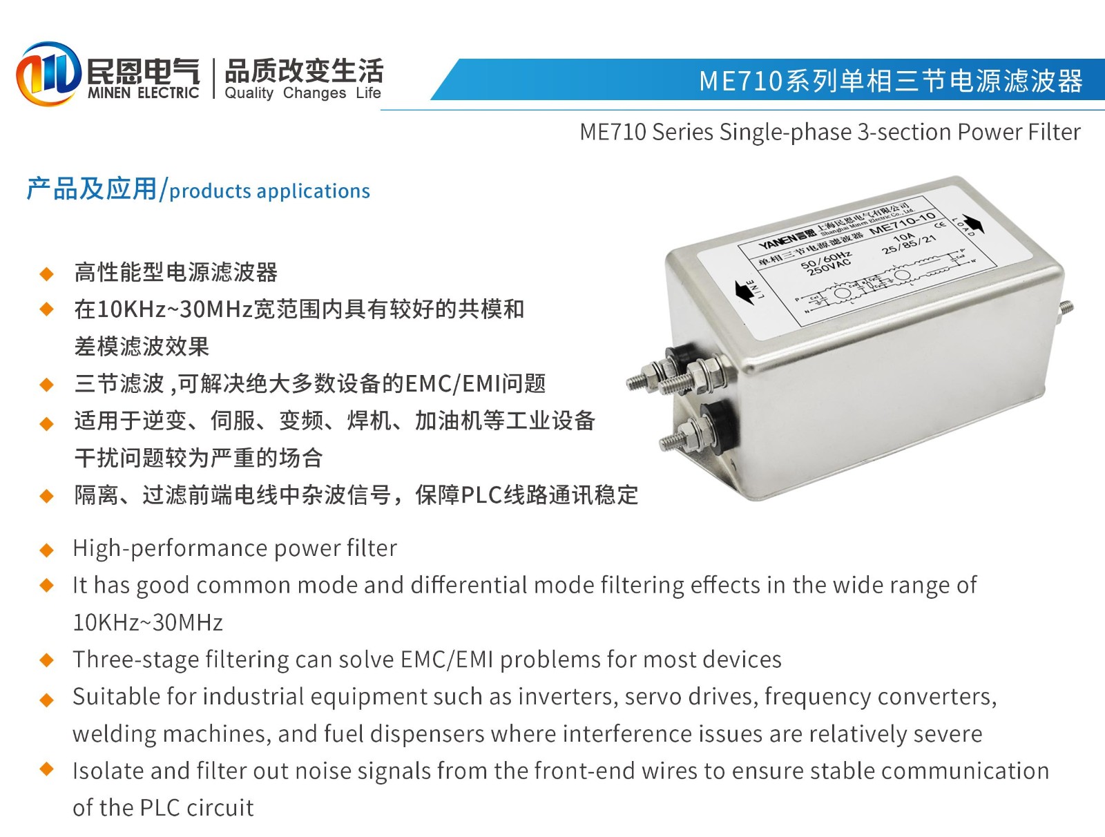 ME710系列單相三節(jié)高性能型電源濾波器