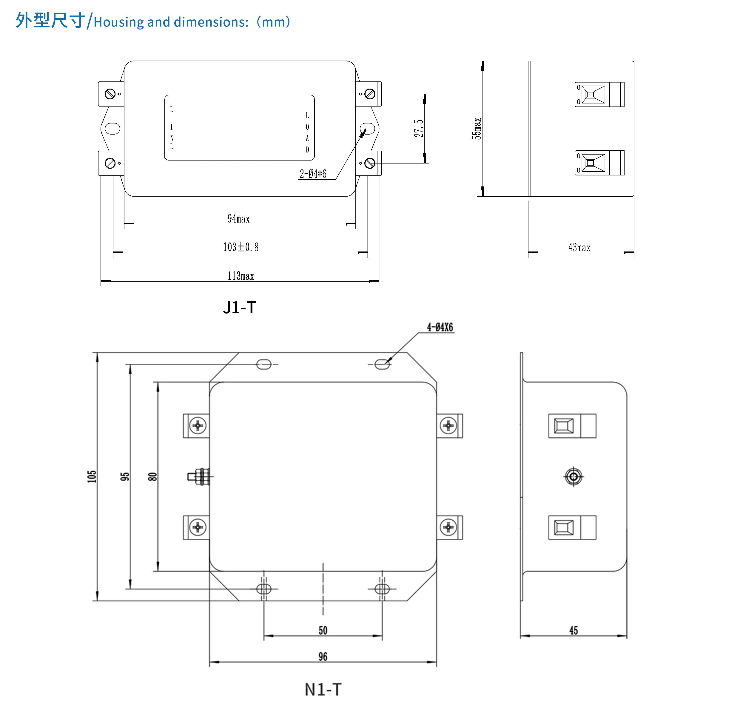 高性能型電源濾波器,在10KHz~30MHz寬范圍內具有較好的共模和差模濾波效果,三節濾波,可解決絕大多數設備的EMC/EMI問題