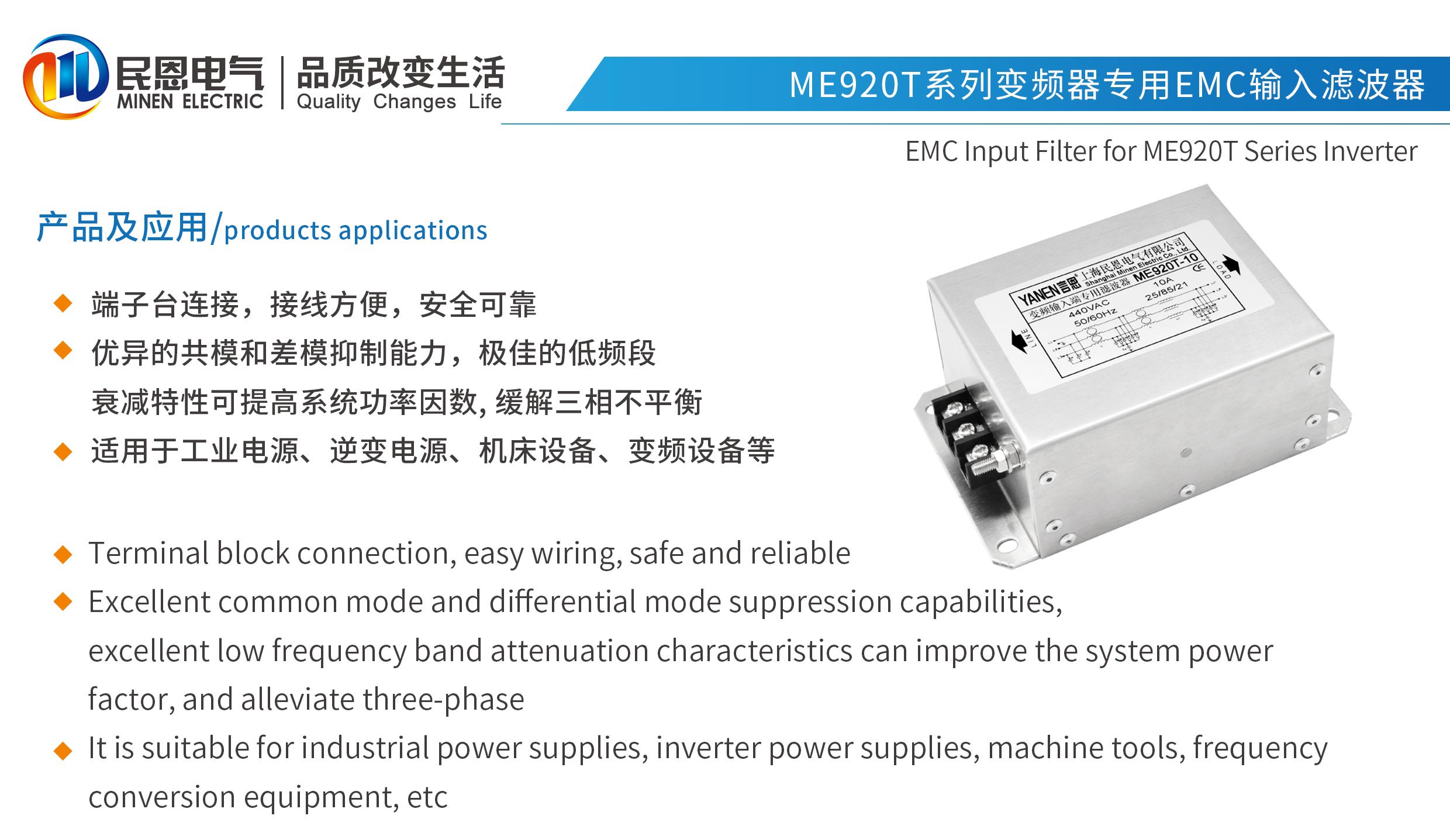 ME920T系列變頻器專(zhuān)用輸入EMC濾波器